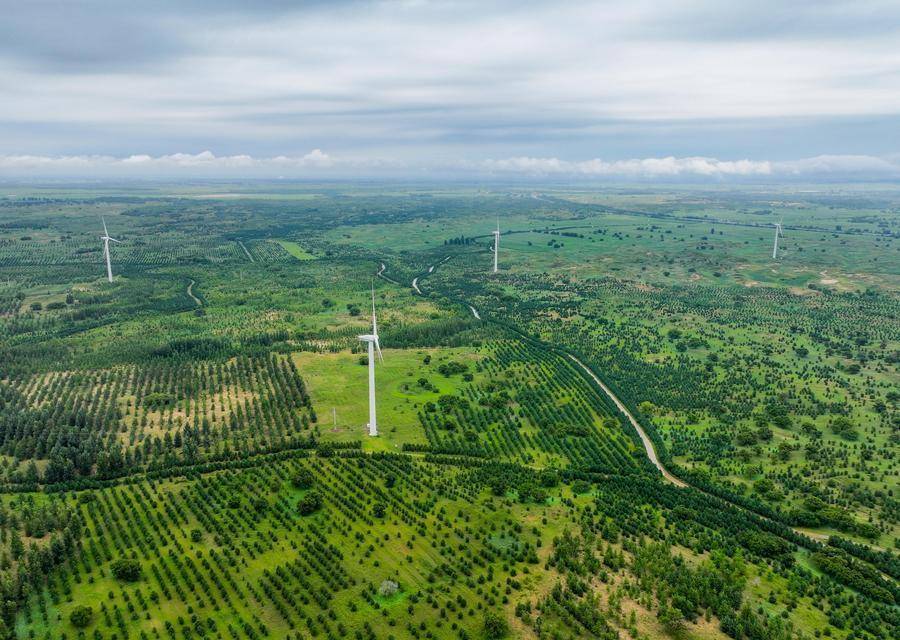 △2024年8月3日,在內(nèi)蒙古通遼科爾沁左翼后旗,科爾沁沙地“雙百萬畝”綜合治理工程努古斯臺(tái)項(xiàng)目區(qū)內(nèi)綠意盎然。