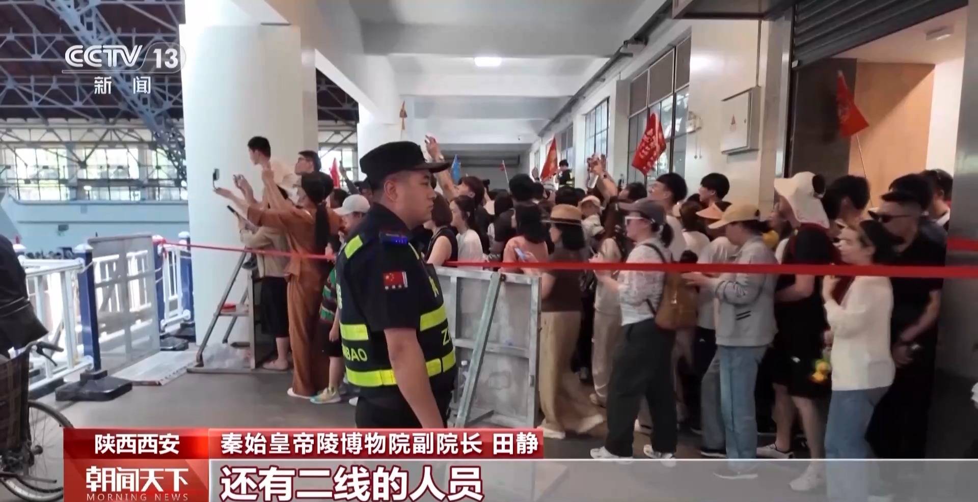 秦始皇帝陵博物院副院長 田靜:我們秦始皇帝陵博物院除了一線的人員全員上班之外,還有二線的人員支援到一線的各個崗位上去,保證暢通,疏導(dǎo)觀眾。