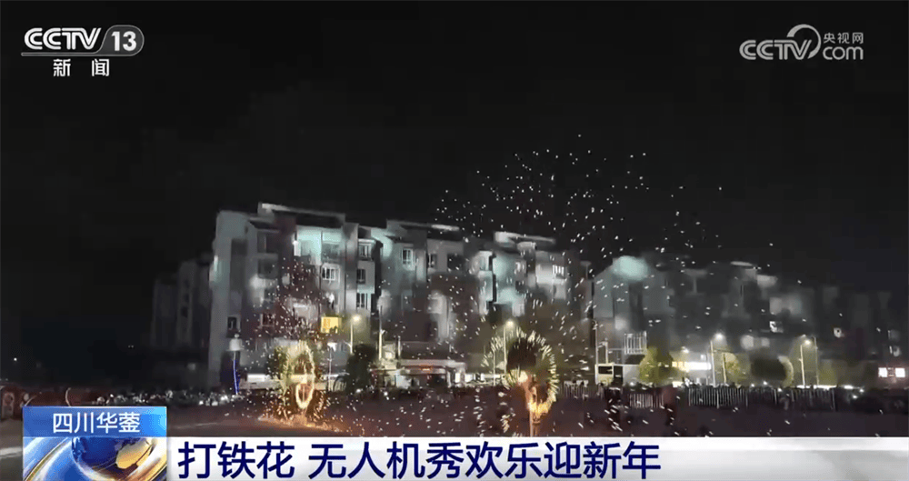 在四川華鎣,當(dāng)?shù)嘏e行了“潮燃華鎣”迎新狂歡夜活動(dòng),非遺打鐵花和大型無人機(jī)表演讓市民游客直呼過癮。