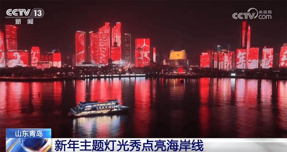 山東青島:新年主題燈光秀點(diǎn)亮海岸線